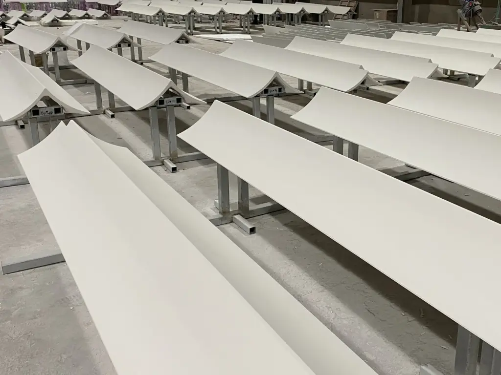 异性板实现建筑表现的多样性和丰富性,主要包括:弧形板、V形板、U形板、双曲面板等。
